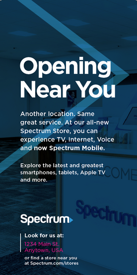 Spectrum New Store Support, a toolkit designed to support new and closing stores with in-store signage, social media content, direct mail announcements, and ribbon cutting events.